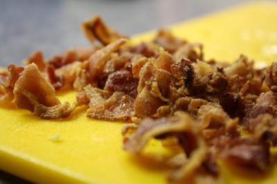 -Add the Parmesan cheese and continue to simmer, add the rest of the cream, bacon and dates.