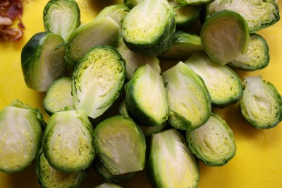 1 bag brussels sprouts, rinsed ends cut off and cut in half