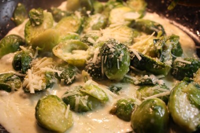 -Add 1/2 cup of cream and sauté the brussels sprout in medium heat, you want to see some bubbles form in the cream.