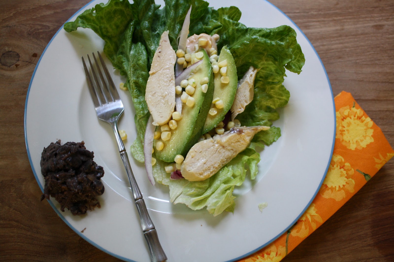 Prepare all of your fresh ingredients (see above photo) and pan fry your chicken in one tbsp butter (or, grill your chicken). Be sure it is thoroughly cooked, as always, I suggest brining this white meat. Slice it and add it to your collection of ingredients listed above. Or if you’d like it to remain warm, cover it with tinfoil.
