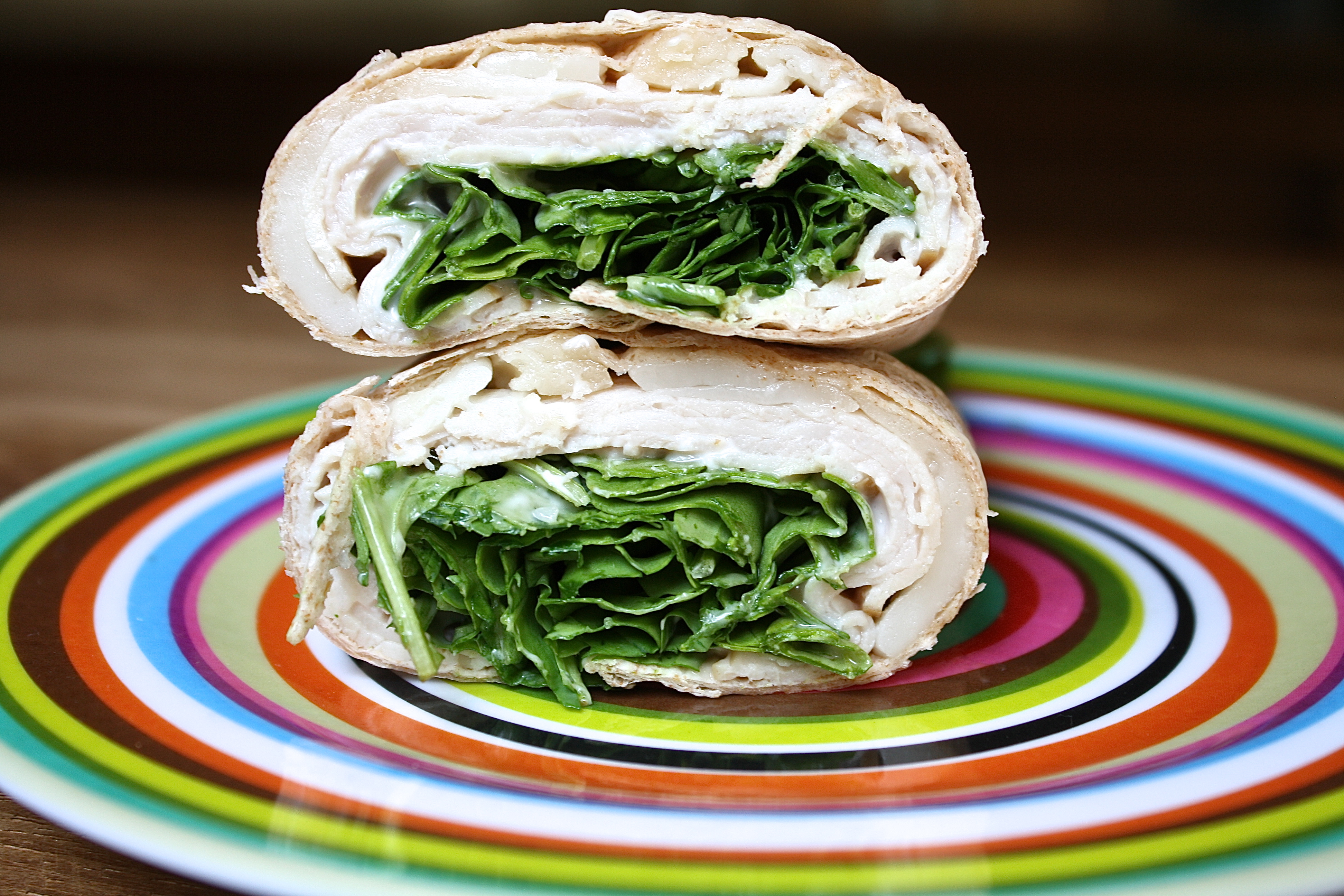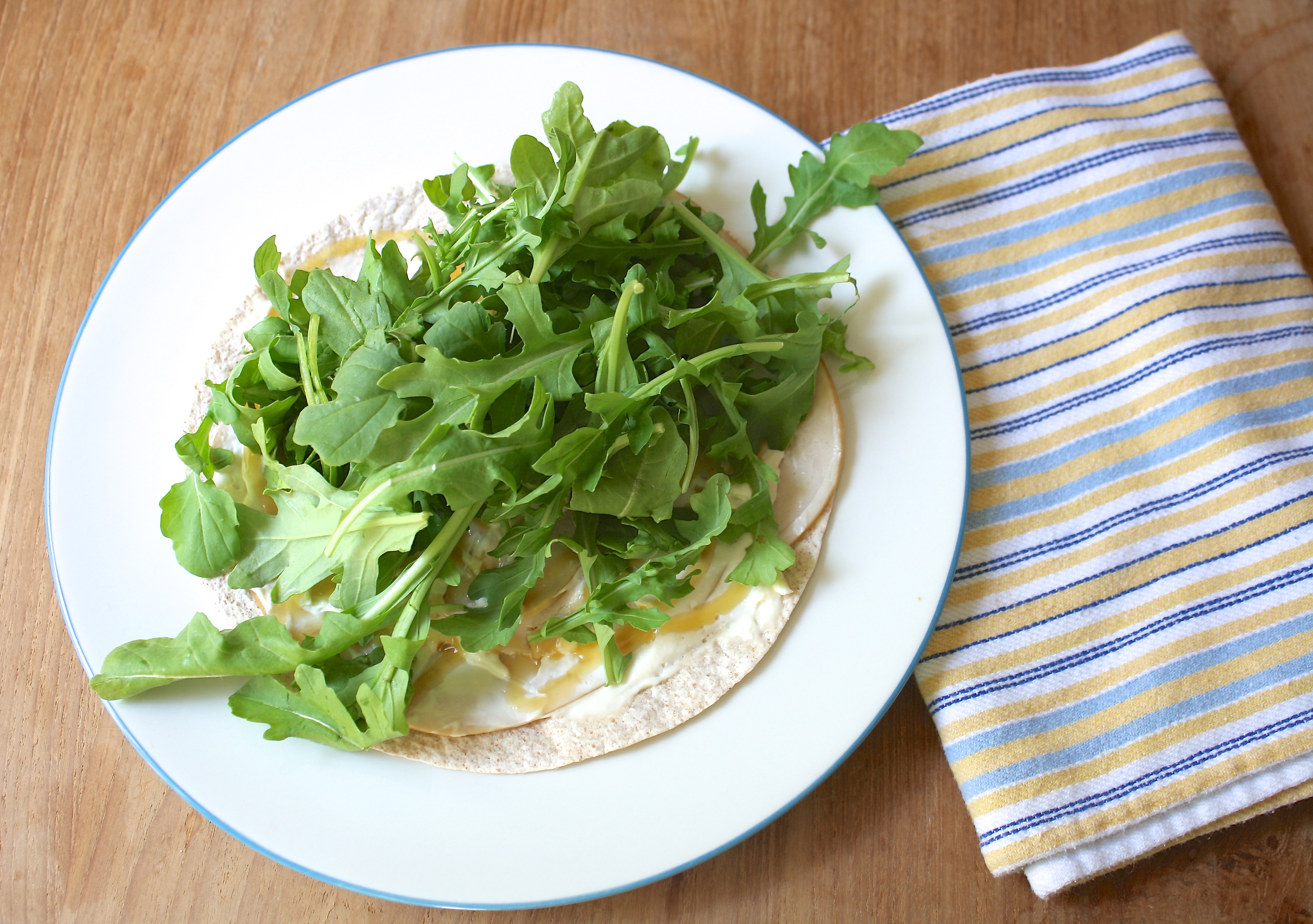 14 SepI treat my wraps like a salad. This wrap is no different. I’m going for a crunchy arugala flavor accompanied by a little turkey and cheese. My goal is to get as much green in there as I can!