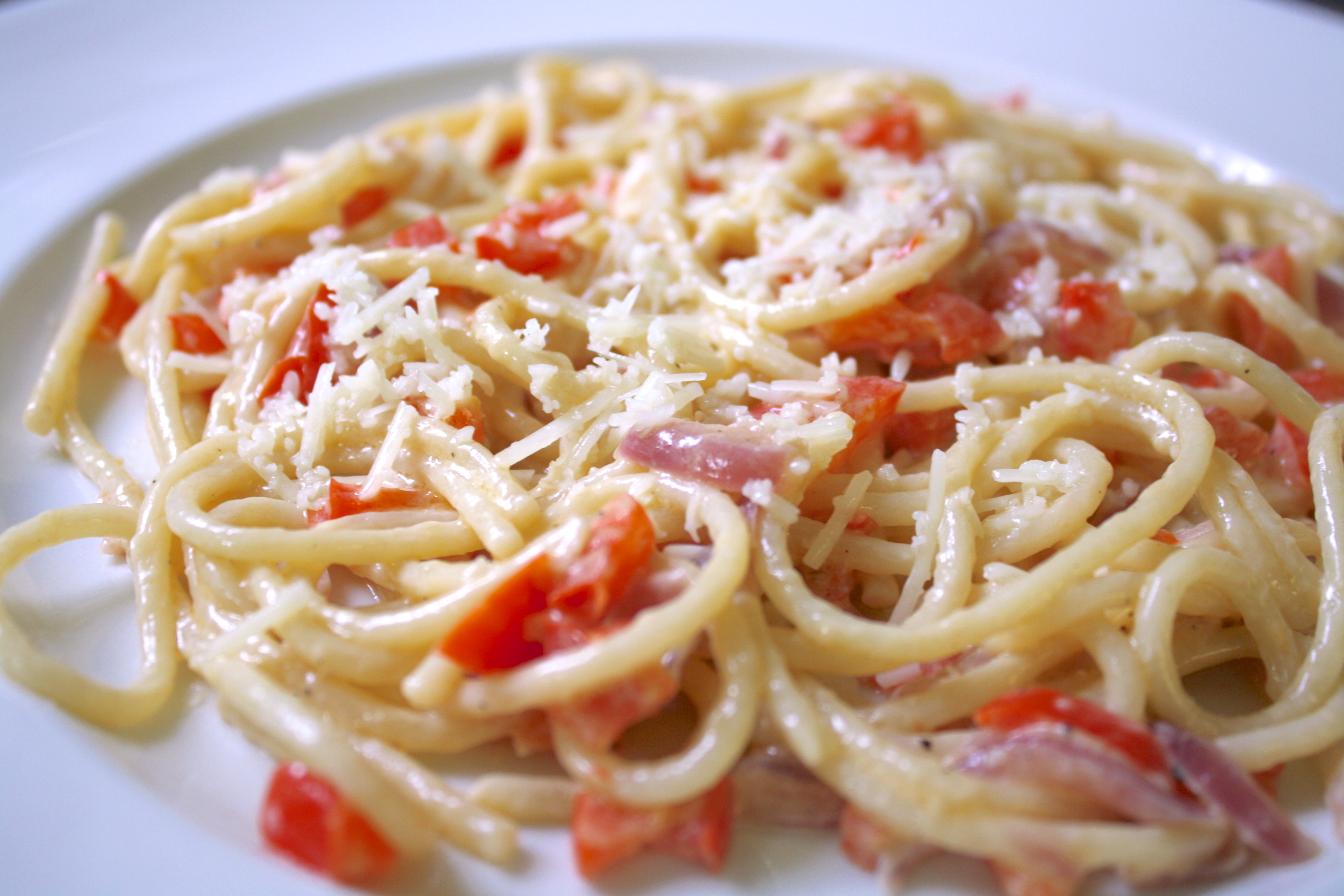 Plate the pasta, add a sprinkle of parmesan on top. Voila!