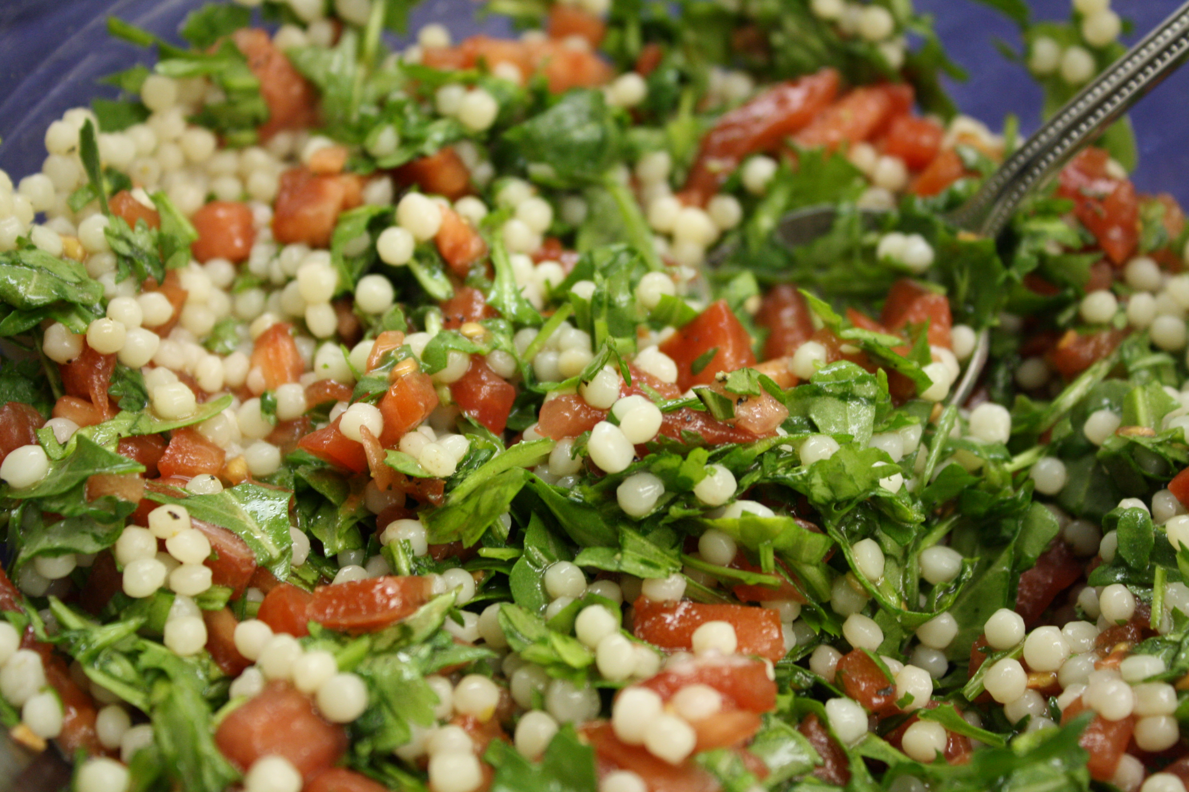 1. Cook the Israeli couscous according to the package. When done, put all of your ingredients in a bowl and mix together. Taste a few times. Once the flavor is to your liking, refrigerate it for at least 1 hour before serving.