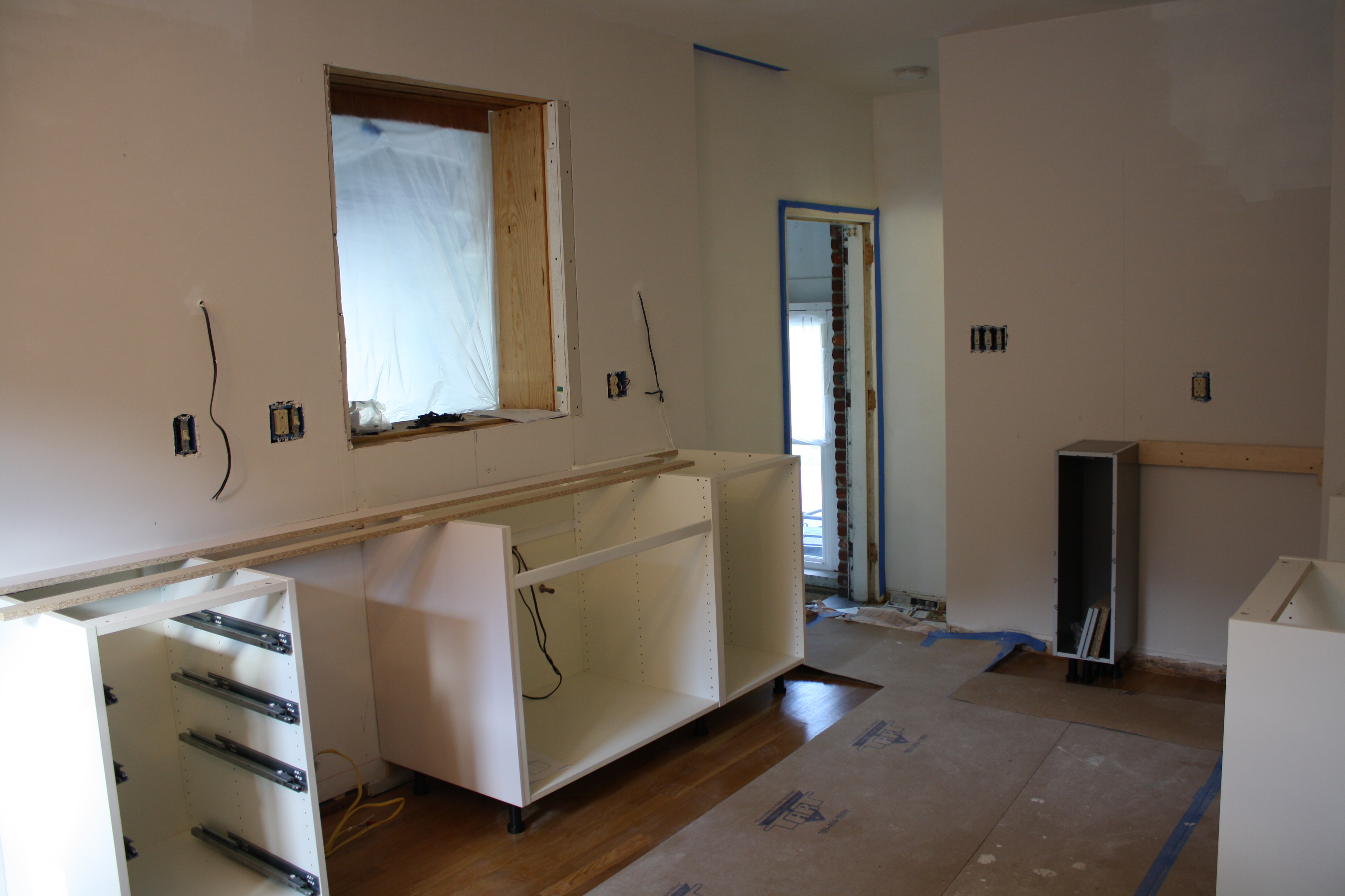 The cabinets have been assembled, by my amazing husband, and were installed last week.